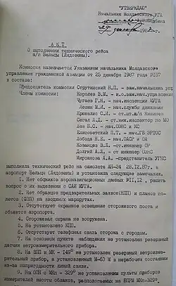 - ^ a b "ФЕДЕРАЛЬНОЕ ГОСУДАРСТВЕННОЕ УНИТАРНОЕ ПРЕДПРИЯТИЕ "ГОСУДАРСТВЕННЫЙ ПРОЕКТНО-ИЗЫСКАТЕЛЬСКИЙ И НАУЧНО-ИССЛЕДОВАТЕЛЬСКИЙ ИНСТИТУТ ГРАЖДАНСКОЙ АВИАЦИИ «АЭРОПРОЕКТ"" [FEDERAL STATE UNITARY ENTERPRISE "STATE DESIGN AND RESEARCH INSTITUTE OF CIVIL AVIATION "AEROPROEKT"] (in Russian). Archived from the original on 3 November 2022. Retrieved 3 November 2022.