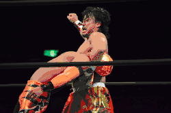Made famous by Tiger Mask as the Tiger Bomb. An attacking wrestler stands facing a bent over opponent and hooks each of the opponent's arms behind the opponent's back, then lifts the opponent as if executing a Tiger Bomb. However, as the attacker drops the opponent back down, they raise a knee and bring the opponent back down horizontally, so their back collides with the knee of the attacking wrestler. CM Punk used this move, calling it the Welcome to Chicago Motherfucker. Io Shirai also uses this move.