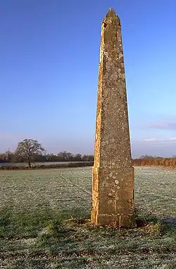 Bainton Manor Farm is a coursed rubblestone house.[1] It was constructed in either the latter part of the 16th or earlier part of the 17th century,[1] during the Great Rebuilding of England, originally as the manor house.[1] In 1783 John Warde, founder and first Master of the Bicester Hunt,[2] was using it as a hunting-box, Joseph Bullock of Caversfield had bought the manor and the two men together built stables and kennels there.[1] Aboout 330 yards (300 m) northwest of the hamlet, an obelisk marks the grave of a favourite foxhound.[3]