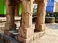A pediment in one of the sides of the temple depicting Shiva in a sitting position -