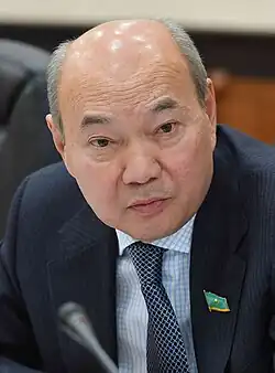 Bakhytzhan Zhumagulov (Kazakh: Бақытжан Тұрсынұлы Жұмағұлов, Baqytjan Tūrsynūly Jūmağūlov; born 18 August 1953) is a Kazakh politician who was Chairman of Otan and after renamed Nur Otan, the largest political party in Kazakhstan.[1] and acting chairman of Nur Otan party, created by merging a number of other parties into Otan.