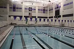 BHS Natatorium, featuring a 6-lane pool with a 12ft diving well, dual diving boards, timing system, and upper viewing deck
