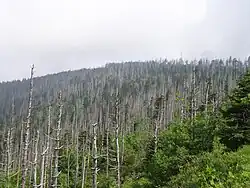 "Ghost" Fraser firs killed by the balsam woolly adelgid on Kuwohi, Great Smoky Mountain National Park