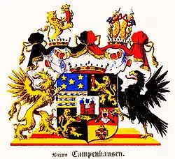 Baron Balthasar von Campenhausen (Russian: Барон Балтазар Балтазарович Кампенгаузен, lit. 'Baron Baltazar Baltazarovich Kampengauzen') (5 January 1772 – 11 September 1823) was a Baltic German statesman who held the ranks of Privy Councilor and Chamberlain in the Russian Empire.