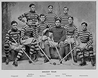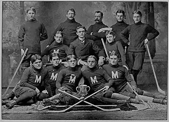 The University of Maryland team won the championship title both in 1897 and in 1898. The 1897–98 season ended on March 10, 1898 with a 0-0 tie between the Johns Hopkins University and the University of Maryland.[2] The University of Maryland team was led on ice by brothers Milton Morris "Mickey" Whitehurst (rover, b. 1873) and Jesse Herbert "Pat" Whitehurst (goaltender and forward, b. 1874).