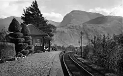 Banavie station opened along with the Mallaig Extension Railway on 1 April 1901.[5] It comprises a single platform on the north side of the line. The station was host to a LNER camping coach from 1936 to 1939.[6]
