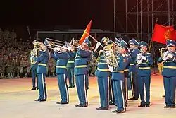The Band of the Central Army House of the General Staff of the Armed Forces of Kyrgyzstan (Kyrgyz: Кыргызстандын Куралдуу күчтөрүнүн Башкы штабынын борбордук үй армиясынын оркестр; Russian: Оркестр Центрального дома Армии Генерального штаба Вооруженных Сил Кыргызстана) commonly known as the Band of the General Staff, also formerly known as the Band of the Ministry of Defense is a military musical group of the Kyrgyz Army. It was officially founded on October 7, 1992, by the Order of the Chairman of the State Committee of the Kyrgyz Republic for Defense Affairs, as the successor to the band of the 8th Guards Panfilov Division. In connection with the reorganization of the Armed Forces in December 1995, the band was put under the direct command of the Central Army House of the Armed Forces General Staff.[2][3][4]