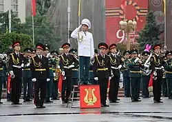 ![]() The band (led by Captain Jumatay uulu Dastan in the white tunic) during a 2015 victory day parade on Ala-Too Square. | |