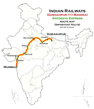 - ^ "गोरखपुर-बांद्रा अंत्योदय एक्सप्रेस की सौगात 15 को". Jagran.com (in Hindi). Retrieved 9 January 2018.