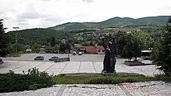 Banya center with the Monument to the fighters for national liberation and the Culture club