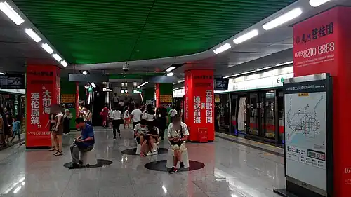 Bao'an Center station (simplified Chinese: 宝安中心站; traditional Chinese: 寶安中心站; pinyin: Bǎo'ān Zhōngxīn Zhàn; Jyutping: Bou2 On1 Zung1 Sam1 Zaam6), also spelled Bao'an Centre station, is an underground station on Line 1 and Line 5 of the Shenzhen Metro in Shenzhen, Guangdong Province, China. Line 1 platforms opened on 15 June 2011 and Line 5 platforms opened on 22 June 2011.