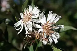 These plants are mainly shrubs and small trees,[5] the largest exceeding four meters in height.[6] The stems are spiny. The flower heads contain pink, red, or purple florets, including 8 to 13 hairy ray florets and usually either one or three disc florets. The ray floret yields a fruit with a plumelike pappus, and the fruit from a disc floret has a more "bristle-like contorted pappus".[5]
