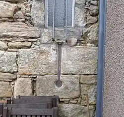 The ancient mansion or castle[3] of Kersland stood on Easter (now 'East') Kersland Farm. The remains of the 'L-Plan' tower has been built into the farmhouse. The barmkin wall survives and has a surviving strong defensive corner tower.[4] Paterson records that the house was almost entirely pulled down by the feuar, Robert Ker.[5] The remaining two barrel vaulted chambers, later used as a dairy and stable, with walls 8 ft thick, until recently formed part of the offices attached to East Kersland.