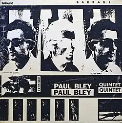 Barrage is the fifth album led by jazz pianist Paul Bley. The album was recorded by Bley's quintet in 1964, released by ESP-Disk, and features saxophonist Marshall Allen in a rare appearance outside the band of Sun Ra.[1][2]