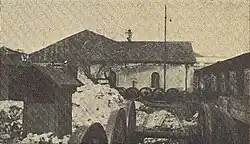At the end of the 19th century, the station and its warehouses underwent expansion works, due to fears that the Cacilhas branch line, which was being planned at the time, would lead to a reduction in rail traffic.[22] Still, at the beginning of the 20th century, the Barreiro station had several structural problems, such as the river docks having no protection and suffering frequent flooding on rainy days.[22] This meant goods had to be loaded and unloaded on a small pier, with only two steam cranes, and stored in a warehouse that was very small.[22] In addition, this infrastructure also served for the unloading of coal, rails, and other materials, to the general warehouses.[22] To make the most of the available space on the ships, refills and small-speed goods were transshipped in the same place, generating several misplacements and other irregularities in the service.[22] The river wharves and railway lines lacked proper identification, which further complicated operations.[22] These deficiencies made the management of the terminal more expensive, which was reflected in the prices charged to customers.[22] Due to the limited space available on the site, only small expansions, such as the installation of new cranes, could be made, which failed to solve the station's problems.[22] On the other hand, navigation near the station was difficult, as the water being shallow in certain places.[36]