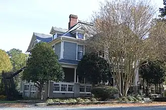 Bartlett Mangum House, also known as Clair's Cafe, is a historic home located at Durham, Durham County, North Carolina. It was built in 1908, and is a 2+1⁄2-story, Classical Revival style frame dwelling. It consists of the main block, three bays wide and two bays deep, with projecting polygonal side bays and a one-story rear ell. It features a high hipped roof, projecting gabled dormers and tall chimneys, and a two-tier portico carried by massive stuccoed Doric order columns. After ceasing residential usage in the 1960s, the building has housed a church, a retail clothes store, and restaurant.[2]