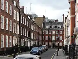 Simon Bradley and Nikolaus Pevsner, in the 2003 revised London 6: Westminster in the Buildings of England series, consider the streets, "among the most perfect Early Georgian streets in Westminster".[4] Westminster City Council noted the unusual residential nature of the streets, together with Lord North Street and Gayfere Street, describing them as "remarkable surviving residential terraces".[5] The houses are mainly of London stock brick, of three storeys with basements and attics and with decorated doorcases.[4] Their layout follows what John Summerson called "the insistent verticality of the London house" [see box].[1] There are some later insertions, mainly of the later 19th and 20th centuries, including: Corner House, which incorporates No.11, Cowley Street, and No.8, Little College Street, and dates from 1911 and is by Edwin Lutyens;[6] No.4, Cowley Street, of 1904 by Horace Field and described by Historic England as "rather out of scale with its neighbours";[7] and No.8 Barton Street, of 1909 and also by Field.[8]