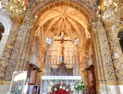 The interior contains a number of artworks from past centuries, including a wooden and stucco crucifix attributed to Antonello Gagini; a large sculpted polyptych associated with the baptismal font, also attributed to Gagini; a silver cross by Vincenzo Archifel; four medieval sarcophagi belonging to the Counts of Valguarnera; and a paleo-Christian crypt below the church.[1][2]