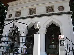 In 1763, Manciu, vătaf (overseer) of butchers, together with his family and other locals, financed a new stone church in place of the previous wooden one, as attested by a carved dedication above the entrance. Construction began that July and finished in October, as indicated by the dedications: to Saint Anne (July 25), Paraskevi of Rome (July 26), and Parascheva of the Balkans (October 14). In a break with tradition, the ktitors are not painted on the walls, but after his death in 1766, Manciu was buried in the vestibule in the spot reserved for church founders.[1]