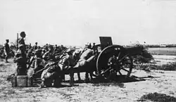Kassala was defended by fewer than 500 men of the Sudan Defence Force (SDF, Major-General William Platt the al-qa'id al-'amm [Leader of the Army], known as the Kaid) and local police, who remained under cover during a twelve-hour bombardment by the Regia Aeronautica, then knocked out six Italian tanks and inflicted considerable casualties on the attackers. At 1:00 p.m., Italian cavalry entered Kassala and the defenders withdrew to Butana Bridge, having lost one man killed, three wounded and 26 missing, some of whom rejoined their units.[2][3] Italian casualties were 43 men killed and 114 wounded.[1] At Kassala, the 12th Colonial Brigade built anti-tank defences, machine-gun posts and strongpoints.[4][a]