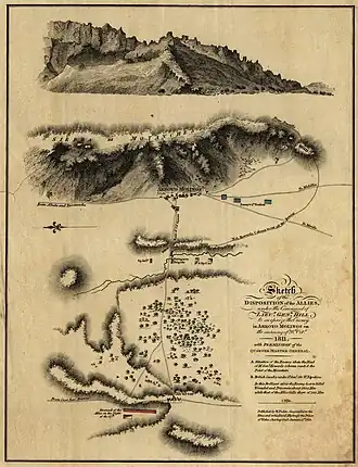 ![]() "Sketch of the disposition of the allies, under the command of Lieut. Genl. Hill to surprize the enemy...", by William Faden, 1812 | |||||||