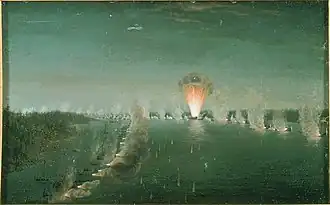 In the battle the Swedes lost only 3 killed and another 8 wounded. The Russians, on the other hand lost up to 400 men killed and wounded according to their own numbers provided by captives after the battle of Svensksund (mostly due to the narrow strait they had to attack through), as well as one frigate and one xebec[1] another larger ship was also lost along with some smaller ones.[3] The Swedes were successful in that they managed to hold off the Russian coastal fleet long enough for the preparations for the breakthrough to be set and so, on July 3, Gustav III of Sweden and his navy finally broke out, although with heavy losses.[4]