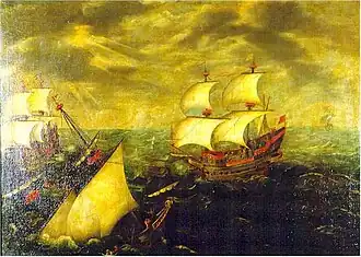 ![]() Naval battle between Spanish and Dutch (c. XVII), anonymous oil on canvas, Naval Museum of Madrid | |||||||