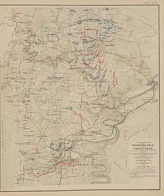 The Battle of Fisher's Hill was fought September 21–22, 1864, near Strasburg, Virginia, as part of the Valley Campaigns of 1864 during the American Civil War. Despite its strong defensive position, the Confederate army of Lt. Gen. Jubal Early was defeated by the Union Army of the Shenandoah, commanded by Maj. Gen. Philip Sheridan.