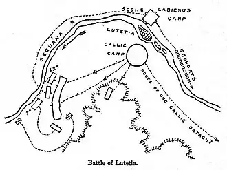 The Battle of Lutetia was fought on the plain of Grenelle in what is now Paris between Roman forces under Titus Labienus and an anti-Roman Gallic coalition in 52 BC during the Gallic Wars. It was a Roman victory.[1]