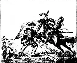 ![]() The 1st battalion of Fatherland Volunteers defending their flag against the Paraguayans (L'Illustration, 1865) | |||||||