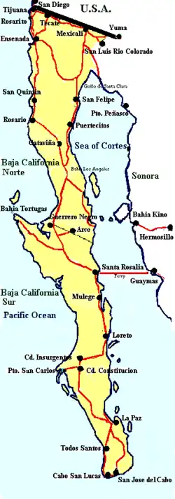 San José del Cabo is at the southern tip