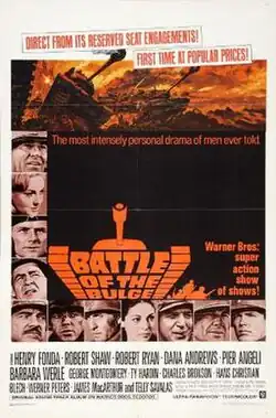 Battle of the Bulge is a 1965 American epic war film produced in Spain, directed by Ken Annakin and starring Henry Fonda, Robert Shaw, Telly Savalas, Robert Ryan, Dana Andrews and Charles Bronson. The feature was filmed in Ultra Panavision 70 and exhibited in 70 mm Cinerama. Battle of the Bulge had its world premiere on December 16, 1965, the 21st anniversary of the titular battle, at the Pacific Cinerama Dome Theatre in Hollywood, California.
