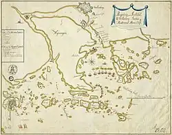 On July 19 and 20, Tordenskjold gathered his ships in Rivö fjord, consisting of seven ships of the line, two frigates, four barges, three floating batteries and four galleys, comprising roughly 500 cannons and around 6000 men.[35] On July 21, an assault begun on Nya Älvsborg using barges and floating batteries. The Danes spread out and used the surrounding islands for cover as they closed in on the fortress. Mortars were set up at nearby Aspholmarna.