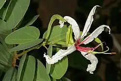 Bauhinia petersiana, the Kalahari white bauhinia,[1] is a species of shrubs from family Fabaceae and the subfamily Cercidoideae found in Botswana, Zambia, Democratic Republic of Congo,[2] Lesotho,[3] Mozambique,[4] Angola, Namibia, Tanzania, South Africa, and Zimbabwe. The species is 2 metres (6 ft 7 in) in height.[5] The flower is up to 15 cm (5.9 in) wide, with five narrow white petals.[6]