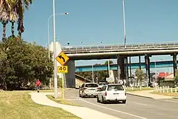 (from east) Beach Street under Fremantle Traffic Bridge, then up between the Traffic and Railway Bridge approaches