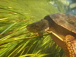 Bear Creek provides a perennial habitat for fish to navigate throughout the year. By far the most common fish found in Bear Creek is the native California roach. The creek also provides habitat for a wide assortment of other creatures including amphibians such as the western pond turtle[5] and other water-based organisms. Due to its perennial nature, Bear Creek also provides a reliable water supply to other creatures, thereby attracting large mammals such as deer and the Native California tule elk.[6]