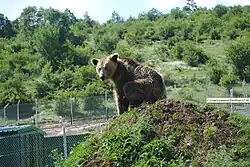 As of November 2023, the sanctuary had 20 brown bears in its care.[6] Most of the bears arrived in 2013 through a Four Paws initiative to rescue Kosovo's restaurant bears, many of whom suffered severe mental health issues from prolonged captivity. Three sibling bears, however, were rescued from two houses in Peja in March 2014 at just six weeks old.[7] According to the sanctuary, four or five of the bears only partially hibernate due to their lack of experience with life in the wild, while 16 other bears at the sanctuary undergo full hibernation.[6]