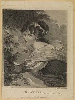 In the 1700s, a woman known as Frances Abington played Beatrice opposite David Garrick's Benedick.[36][37] Engravings from the nineteenth century of Anna Cora Ritchie in the role of Beatrice survive, but there is no additional information about Ritchie's performance.[38] In the late nineteenth century, Ellen Terry performed the role of Beatrice opposite Henry Irving's Benedick at the Lyceum.[39][40] In 1903, Olive Kennett portrayed Beatrice.[41] Two years later, Beatrice was played by H. B. Tree.[42]