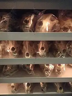 The museum houses a collection of more than two million specimens, some dating back to as early as the 1910s.[12] These specimens are divided into six main subcollections – the Cowan Tetrapod Collection, the Marine Invertebrate Collection, the Herbarium, the Spencer Entomological Collection, the Fish Collection, and the Fossil Collection – and over 500 permanent exhibits.[9] Most items are accompanied by a description card briefly outlining details like the species and provenance information.[10]