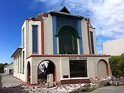 Beckenham Baptist Church, having suffered damage in the 2011 earthquakes. It has subsequently been demolished.