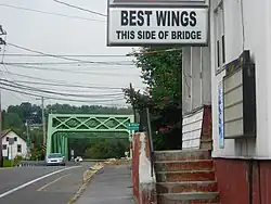Restaurant sign by the bridge