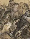 The Dutch artist Leo Gestel drew around 100 drawings of Belgian refugees.[4] He completed them in his atelier and gave the proceeds of any sales to the national refugee committee.