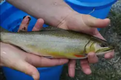 A brook trout (Salvelinus fontinalis) at the hatchery on May 31, 2023.