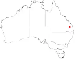 This species of Bertya is only known from Beeron National Park in south-east Queensland, where it grows in shallow soil on exposed granite outcrops in open forest or woodland.[2][3]