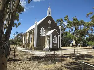 Bethel was settled by German-speaking people in around 1854 seeking to establish a Moravian Brethren community. From 1856 there was also a group of people of Wendish origin. They also spoke German.[2] Some of these settlers initially worshipped with the Moravians, however a new church was built named Steinthal and many worshipped there instead. The Bethel congregation severed its links with the Moravians and called a Lutheran pastor in the 1890s. The Steinthal church closed and combined in 1906.[3] The school was closed by the state government in 1917 along with many others that taught in German.[4]