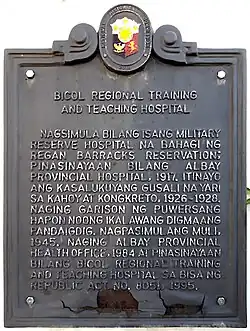 The Bicol Regional Hospital and Medical Center (BRHMC) (formerly, Bicol Regional Training and Teaching Hospital (BRTTH)) is a tertiary level government hospital in the Philippines with an authorized bed capacity of eight hundred (800).[1] It is located in Daraga, Albay.
