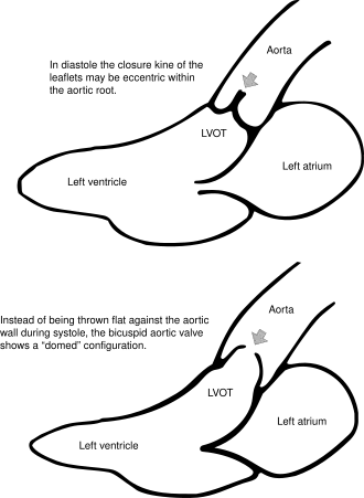 6. ^ a b c Ward, C. (2000-01-01). "Clinical significance of the bicuspid aortic valve". Heart. 83 (1): 81–85. doi:10.1136/heart.83.1.81. ISSN 1355-6037. PMC 1729267. PMID 10618341.