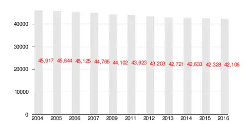 According to the Central Statistical Office data, the district's area is 3.70 square kilometres (1.43 square miles) and 42 633 people inhabit Bieńczyce.[1]