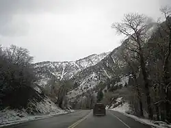 Big Cottonwood Canyon is a canyon in the Wasatch Range 12 miles (19 km) southeast of Salt Lake City in the U.S. state of Utah.[2] The 15-mile (24 km)-long canyon provides hiking, biking, picnicking, rock-climbing, camping, and fishing in the summer. Its two ski resorts, Brighton and Solitude, are popular among skiers and snowboarders. The canyon is accessed by The Big Cottonwood Canyon Scenic Byway (SR-190), which runs its length to Guardsman Pass at the top of the canyon, allowing travel to Park City in the summer months.