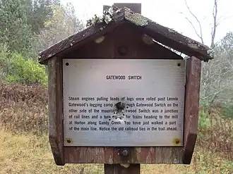 Big Run Trail (Forest Trail 527) runs along the east bank of upper length of Big Run. A portion of the trail is the remnant of the rail line that served Parsons Pulp and Lumber Company at Horton near Gandy Creek.[2] The trail can be accessed from either Gatewood Trail off of Sawmill Run Road / Forest Road 28/10 at RM 10.9 (38°41′25.188″N 79°33′58.6548″W / 38.69033000°N 79.566293000°W) or the parking lot at the northernmost oxbow of Forest Road 112 (38°42′47.898″N 79°34′5.3544″W / 38.71330500°N 79.568154000°W).